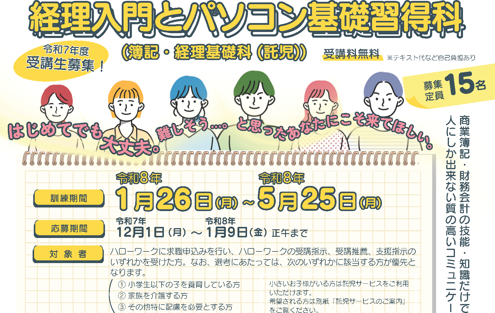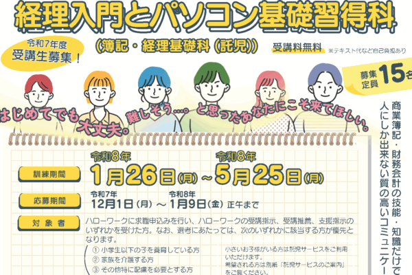 経理入門とパソコン基礎習得科(簿記・経理基礎科(託児))
